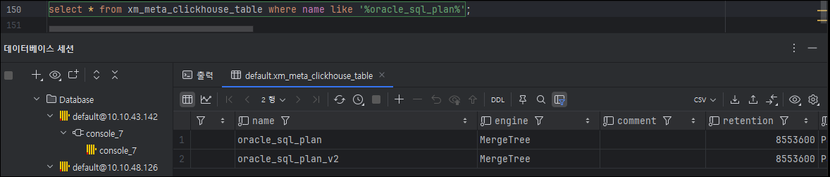 엔진 확인 방법xm_meta_clickhouse_table 테이블에서 확인 가능