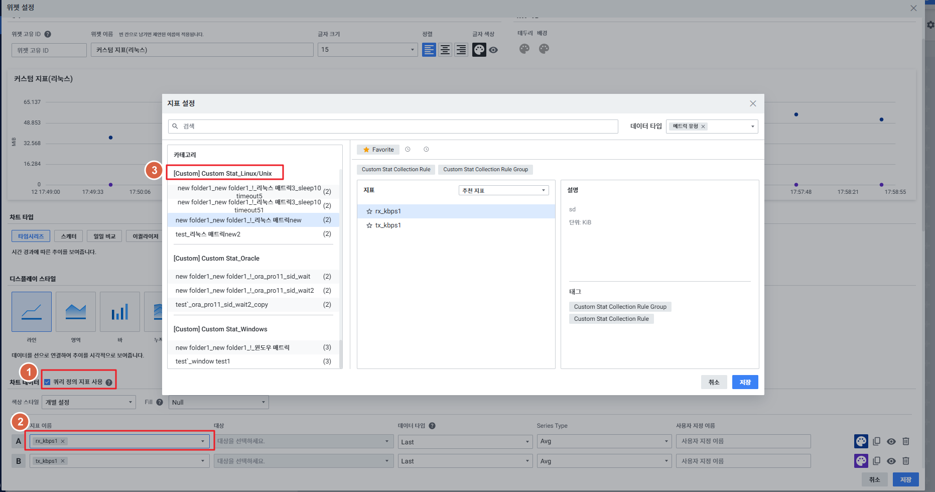 2카테고리 하단에 [Custom] Custom Stat_{사용자 지표 타입}에서 지표 선택
