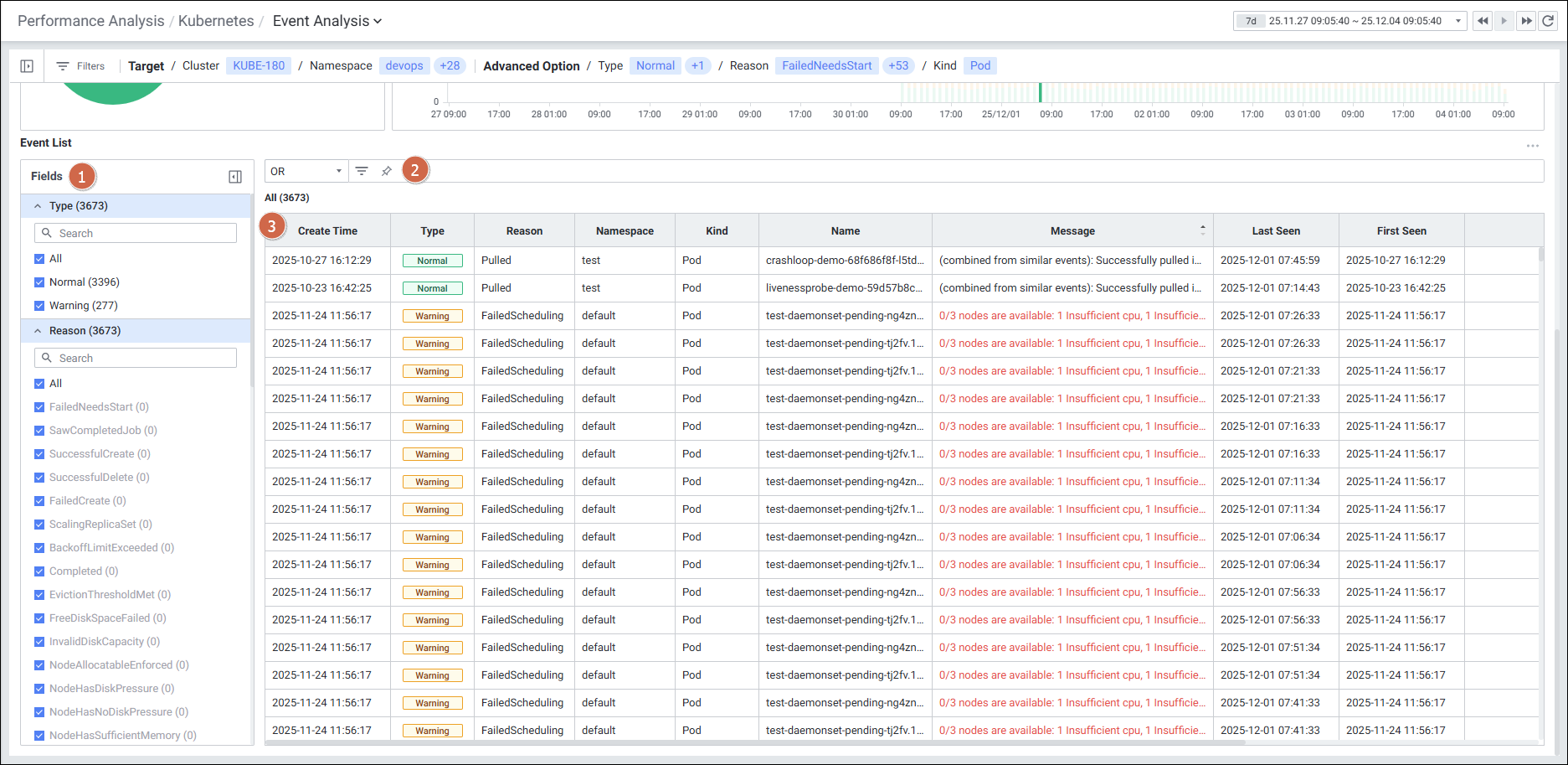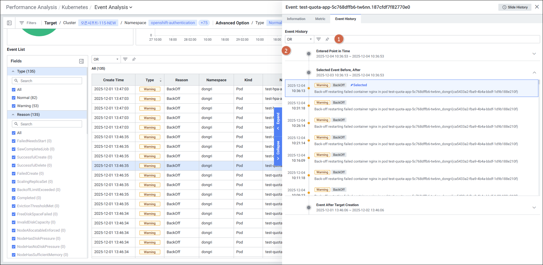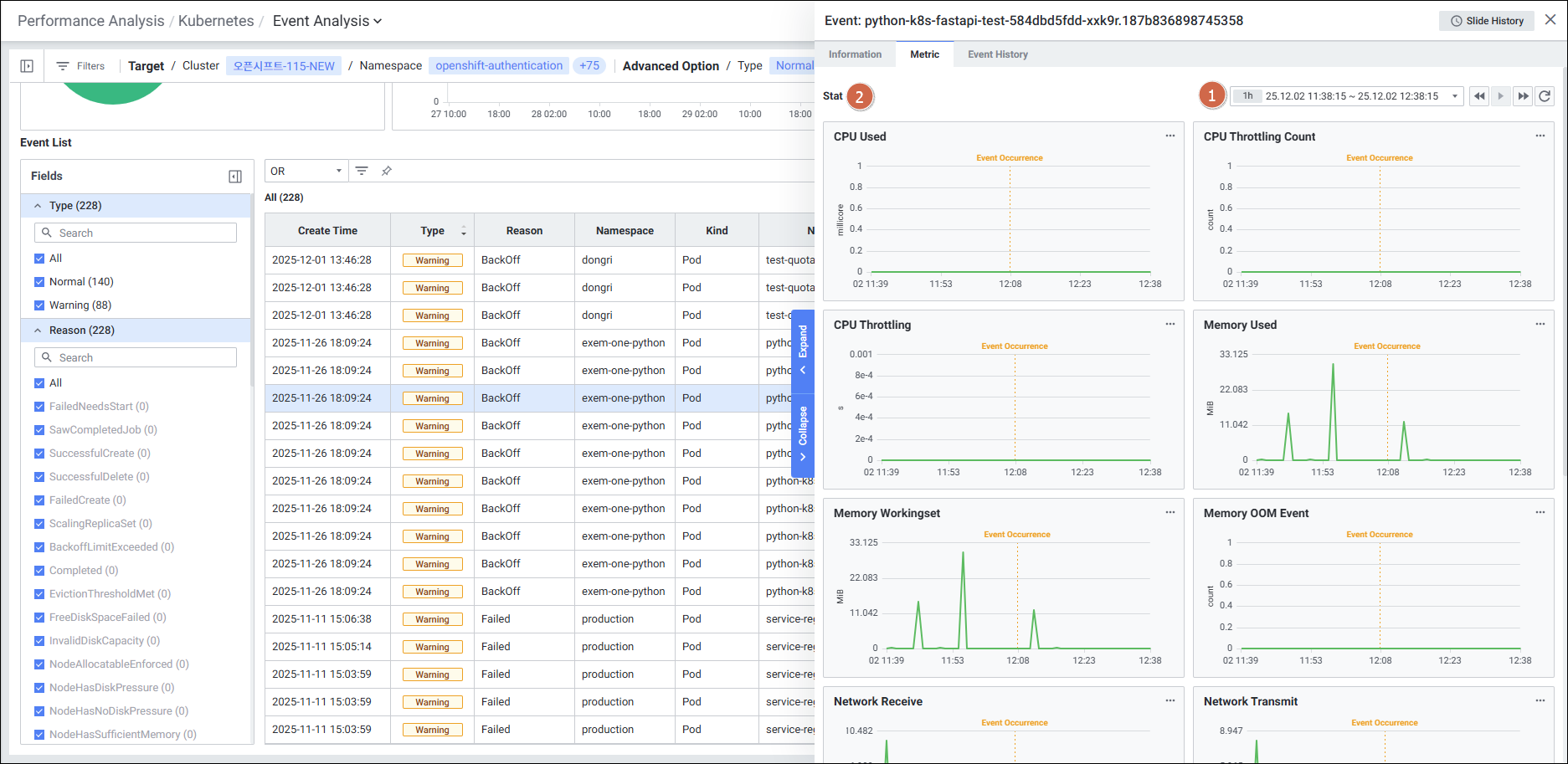 메뉴 경로: Kubernetes > Performance Analysis > Event Analysis