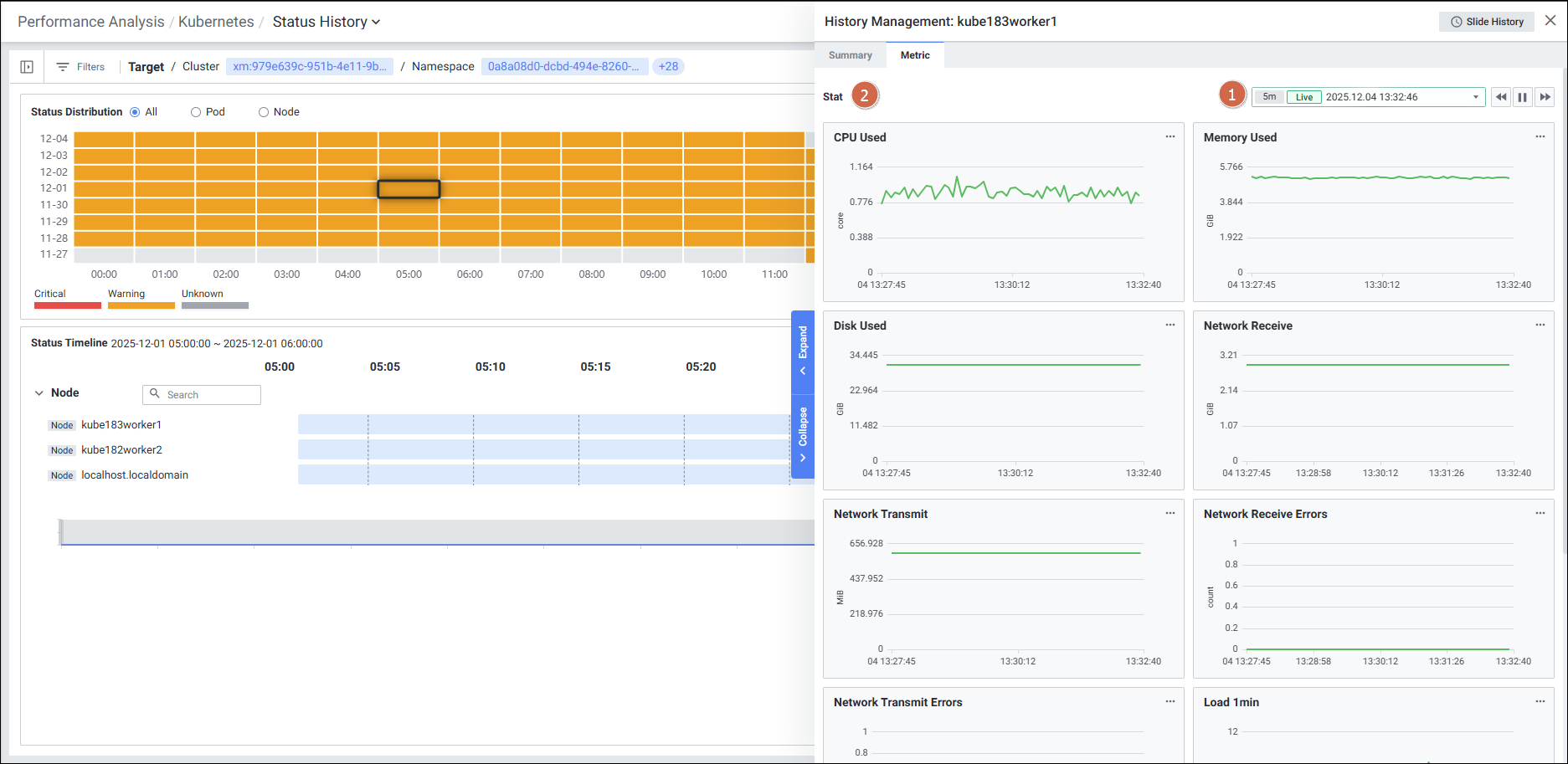 메뉴 경로: Kubernetes > Performance Analysis > Status History