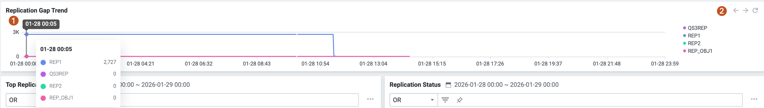 | 3 | Replication Gap Trend | 모든 Replication Object의 Replication Gap Trend 지표에 대한 모니터링을 제공합니다. |