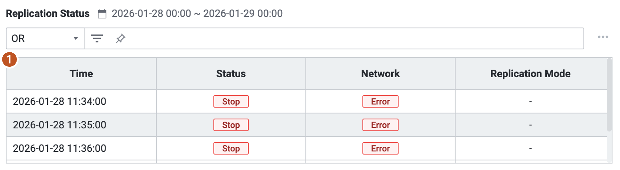 | 1 | Time Period | Replication Detail의 조회 기간과 시간을 설정합니다. |