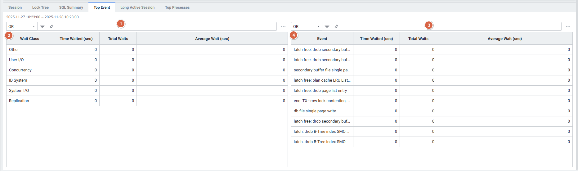 | 2 | Grid | Wait Class로 grouping한 Top Event 목록을 보여줍니다. |