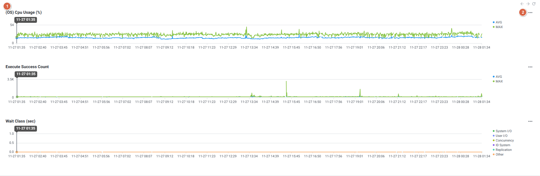 | 3 | Trend Chart | 데이터베이스 주요 지표 Trend를 표시하며 주요 성능 지표에 대한 모니터링이 가능합니다. |