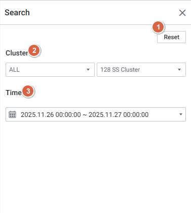 | 3 | Time | 기간 버튼 및 달력 UI를 이용하여 조회 기간 및 시간을 설정합니다. |