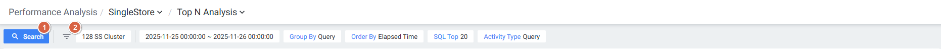 메뉴 경로: Performance Analysis > Database > SingleStore