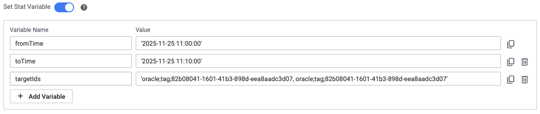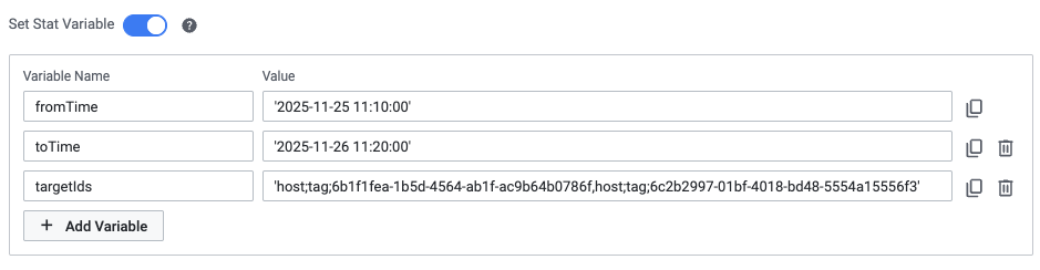 | Step 3 | 참조 변수 적용: fromTime, toTime, targetIds (필수) |