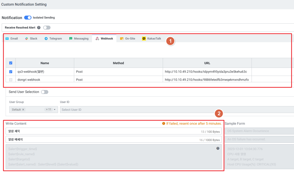 | 3 | User Group | 알림 수신 그룹 선택 |