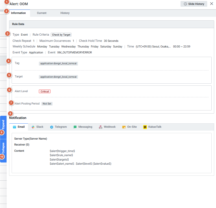 | 7 | Alert Value | 발생된 알람의 값을 보여줍니다. |