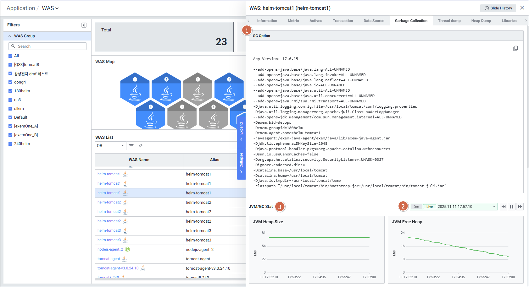 WAS 디테일 슬라이드의 가비지 컬렉션을 확인하는 화면입니다.