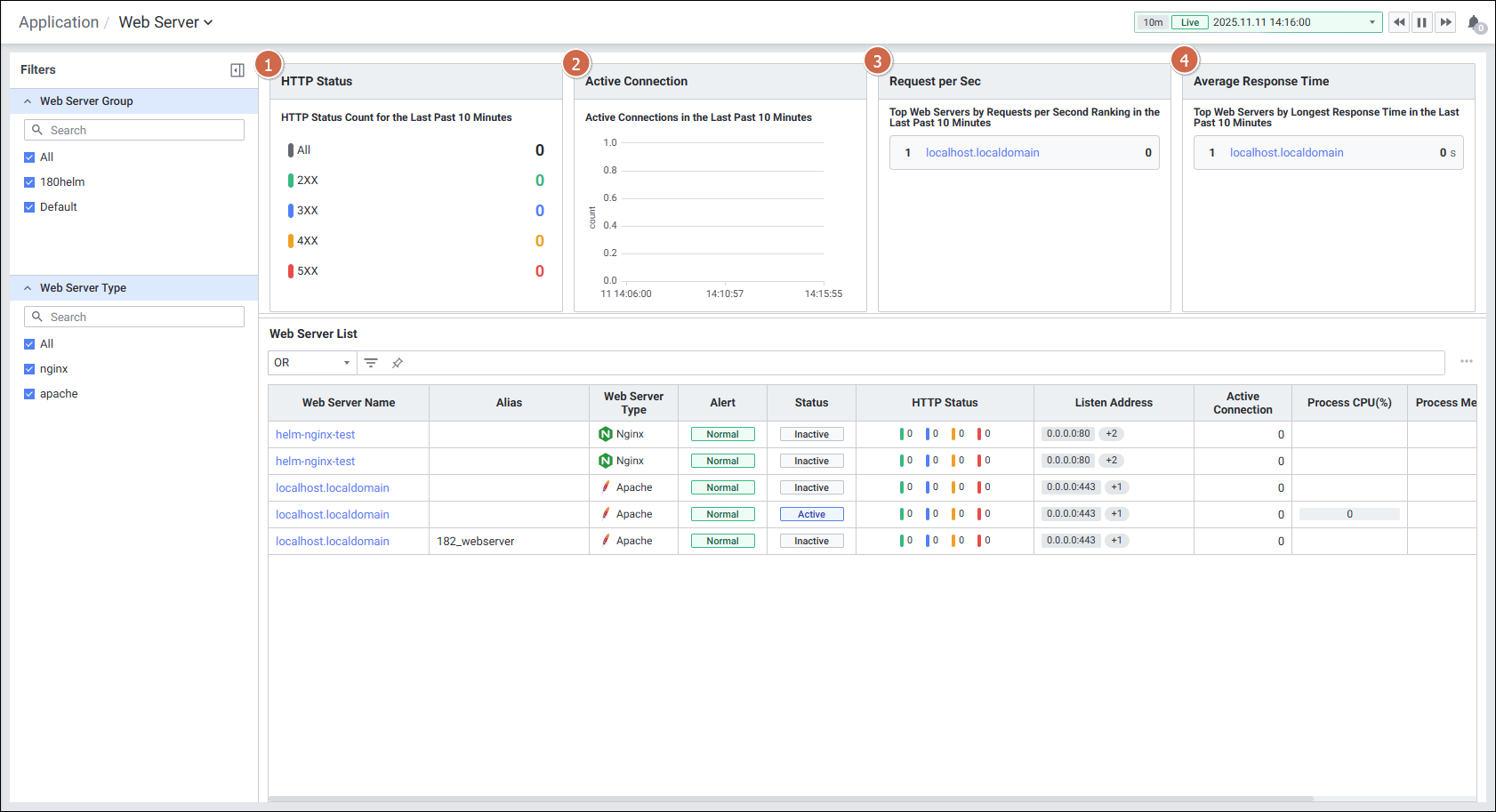 | 4 | Average Response Time | 최근 10분 동안의 작업 응답 시간이 긴 상위 웹 서버 순위를 보여줍니다. |