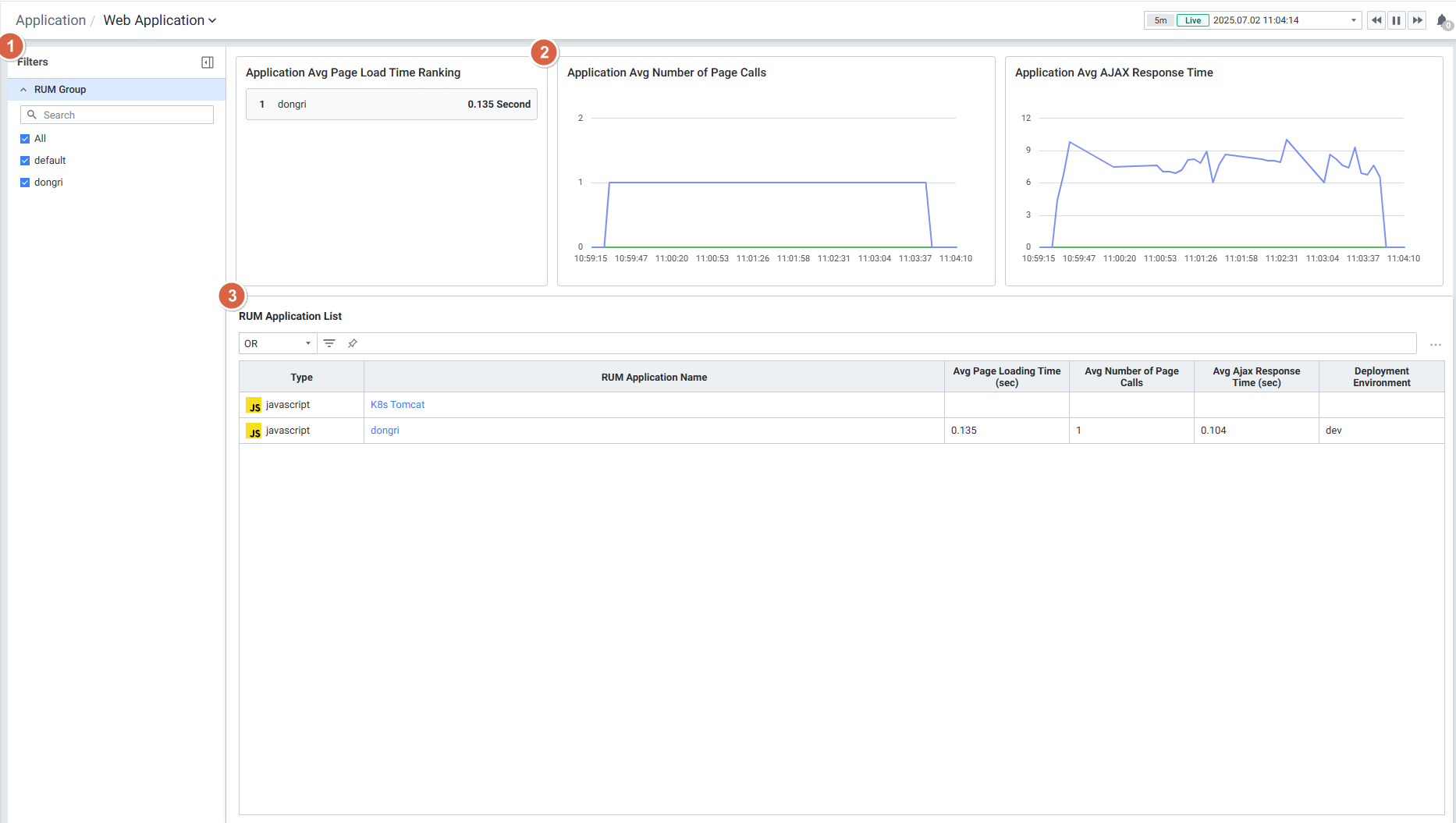| 3 | RUM Application List | Web Application 목록을 그리드 형식으로 보여줍니다. |