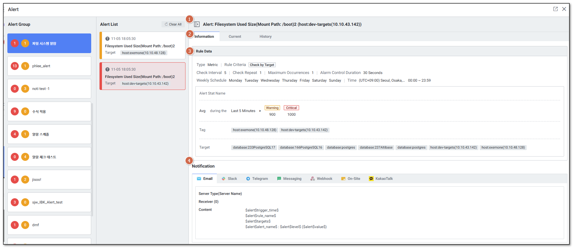 실시간 발생된 Alert Detail Slide 화면입니다.