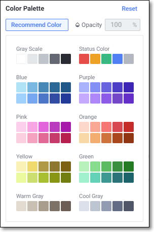 | 12 | Color Style | Chart Theme: 랜덤으로 적용되는 테마 스타일을 선택합니다. User Custom: 시리즈별 차트 색상을 설정합니다. |