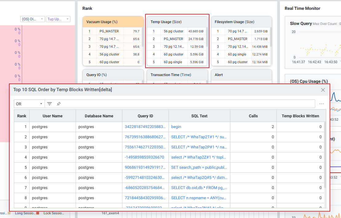 | 7 | Temp Blocks Written | 10분 동안의 명령문에서 쓴 총 임시 블록 수 변화량 |