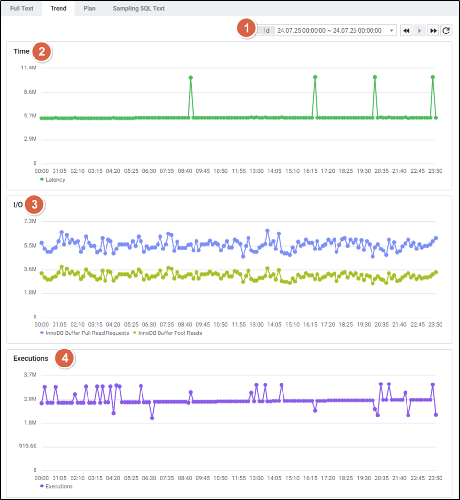| 4 | Executions | 조회한 SQL ID의 Executions에 대한 추이를 나타냅니다. |