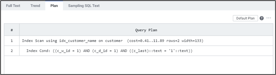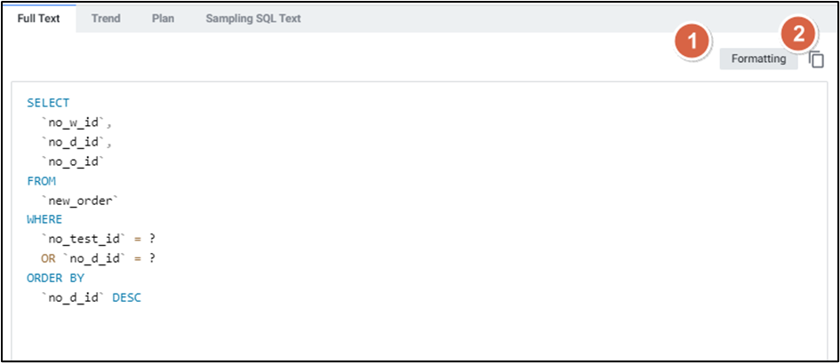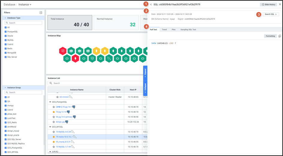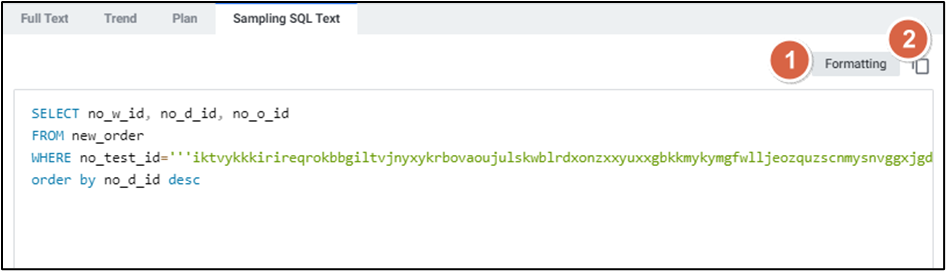 | 4 | Tab | 해당 탭의 정보를 보여줍니다. Full Text Trend Plan Sampling SQL Text |