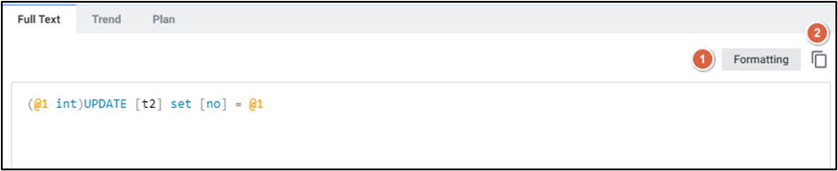 | 2 | Copy | 아이콘 클릭 시 SQL 전체 텍스트를 복사합니다. ‘Contents has been Copied’ 메시지 창을 보여줍니다. |