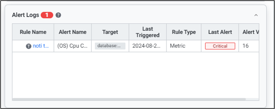 Rule Name 클릭 시, Alert Detail Slide로 발생 정보를 확인할 수 있습니다.