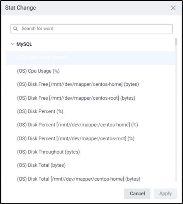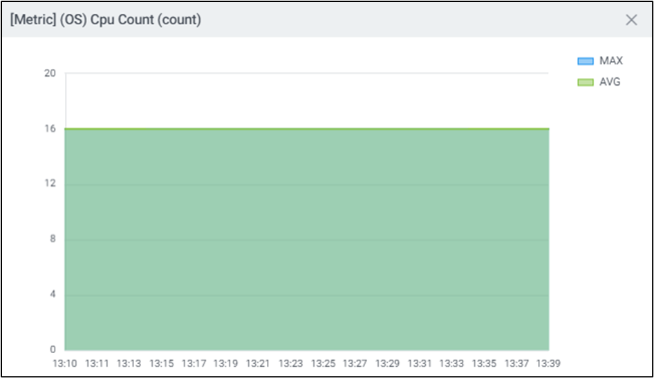 Statistics row 클릭 시 성능지표의 30분 이전부터 현재 시간까지의 1분 Summary max, avg 값을 팝업 차트로 볼 수 있습니다.