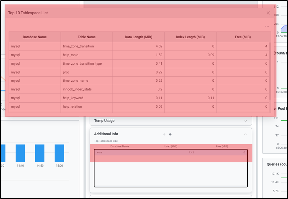 MariaDB인 경우 Global Temp Tablespace 영역에 대해서만 모니터링이 가능하며, MariaDB 10.3 버전부터는 Temp Tablespace 모니터링을 지원하지 않습니다.