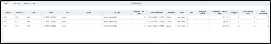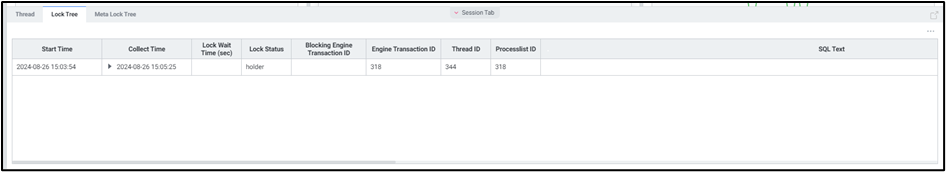 현재 Meta Lock 상태의 Thread 목록을 확인할 수 있습니다. (상세 내용은 5-3) Meta Lock Tree 참고)