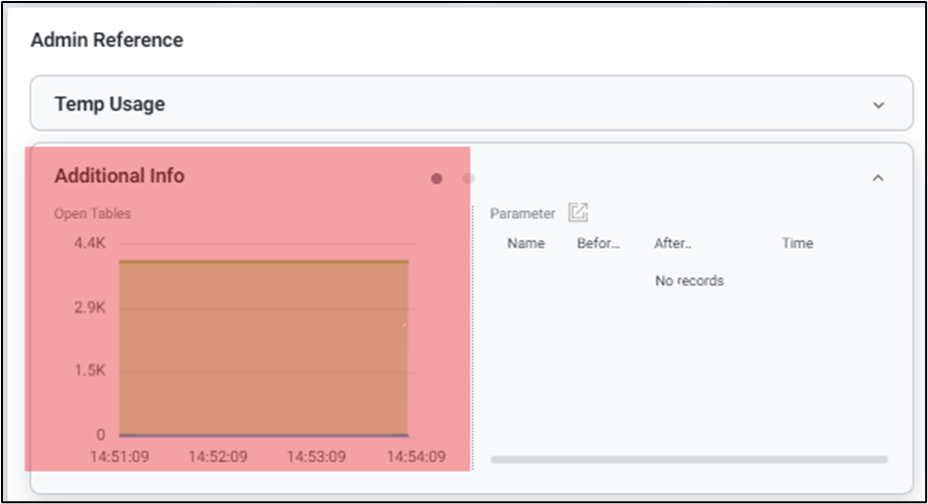 6-2) Additional Information open table사용량, 파라미터 변경사항, Tablespace크기 등을 확인할 수 있습니다.