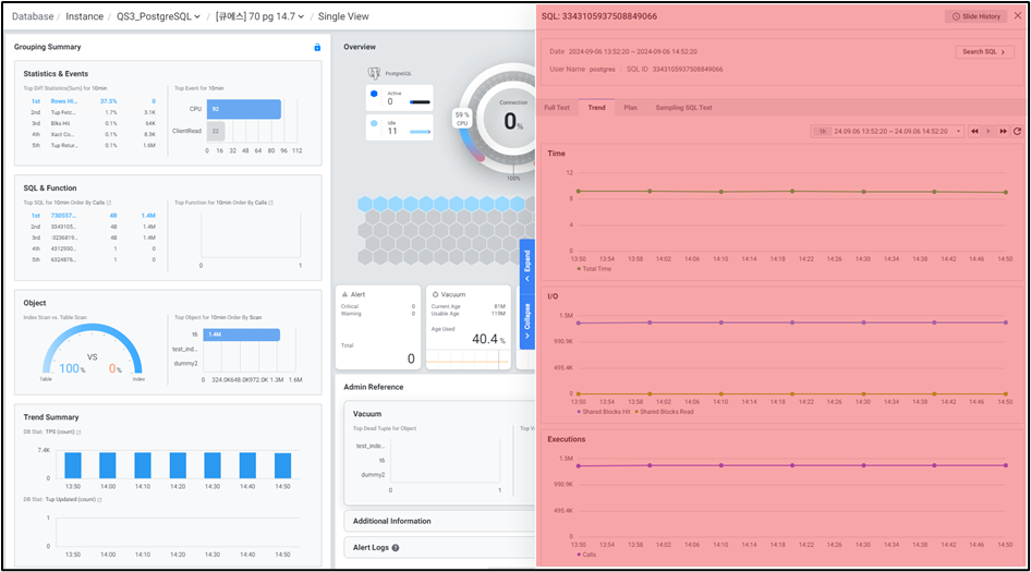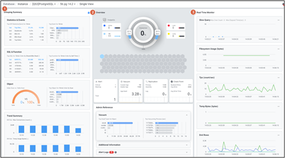 - 사용자 Alert, Vacuum, Replication, Checkpoint 등 주요 관리 포인트를 확인합니다.