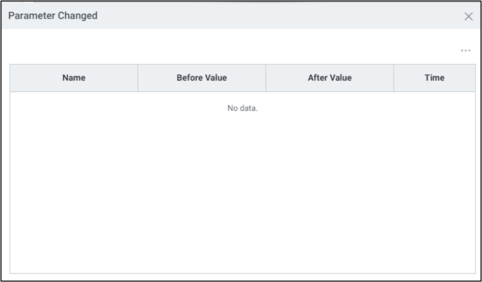 클릭 시 ‘Parameter Changed’ 팝업창으로 연계됩니다. 변경된 파라미터의 변경 전, 변경 후, 변경된 정보를 수집한 시간 값을 확인할 수 있습니다.