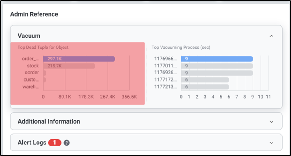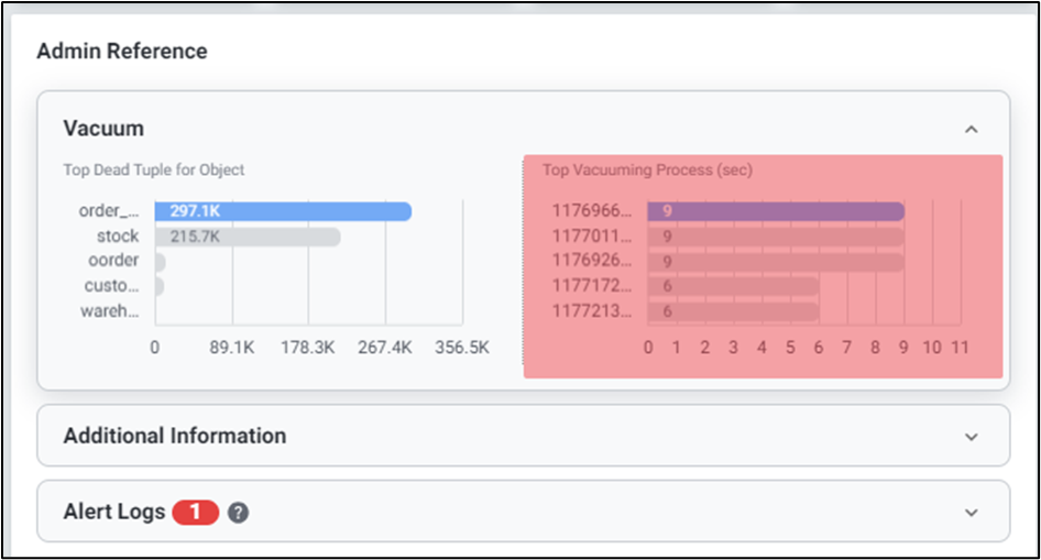 Vacuum을 오래 수행하고 있는 Top 5 Active Backend를 확인할 수 있습니다.