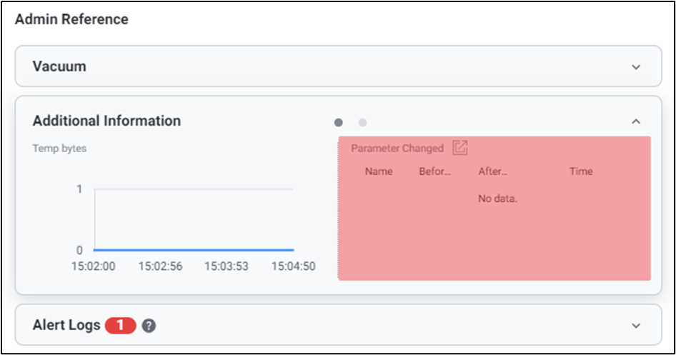Vacuum, Temp, Tablespace size, Changed parameter 등 주요 관리 포인트를 표시합니다.