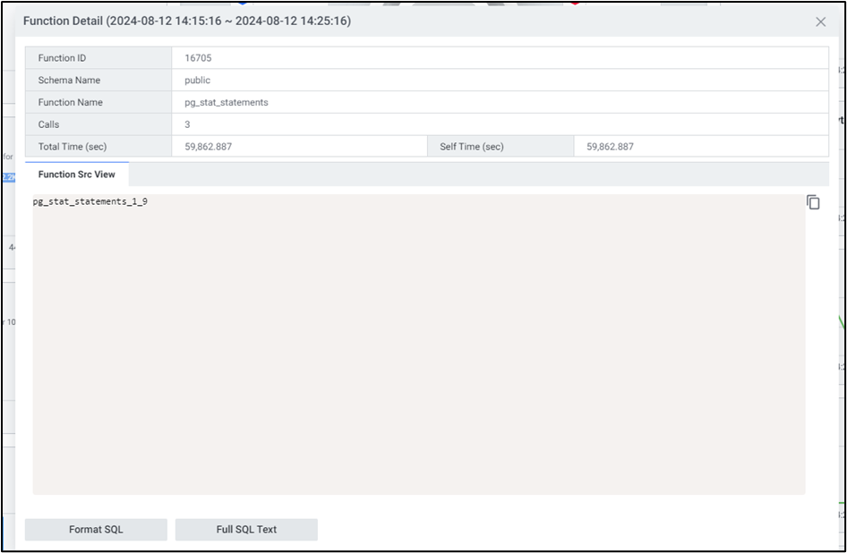 Top Function row 클릭 시 해당 Function ID 정보를 확인할 수 있는 ‘Function Detail’ 팝업창으로 연계됩니다.