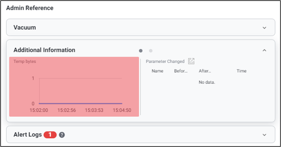 | 1 | Alert | 현재 Alert 이 발생하고 있는 알람 발생 카운트를 표시합니다. 해당 영역을 클릭하면 Alert 발생 정보를 확인할 수 있는 Admin Reference 영역의 Alert Logs 항목이 펼쳐집니다. |