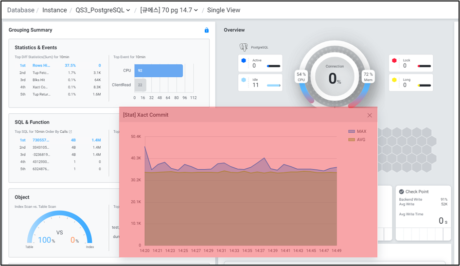 Table, Index Scan 비율을 확인하여 성능 저하를 유발하는 Object 정보를 확인할 수 있습니다.