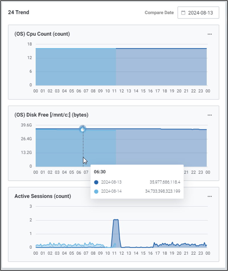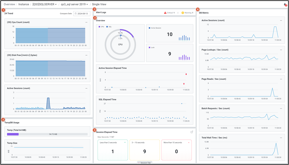| 1 | 24 Trend | 데이터베이스의 성능 지표들에 대한 24시간 운용 추이를 제공합니다. 다른 날짜의 성능 추이 비교를 통해 운영 추이를 확인할 수 있습니다. |