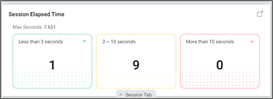 | 5 | Session Elapsed Time | 세션 수행 시간 별 카운트를 표시합니다. 해당 영역을 클릭하면 세션 발생 정보를 확인할 수 있는 Session List 팝업 창으로 연계됩니다. |