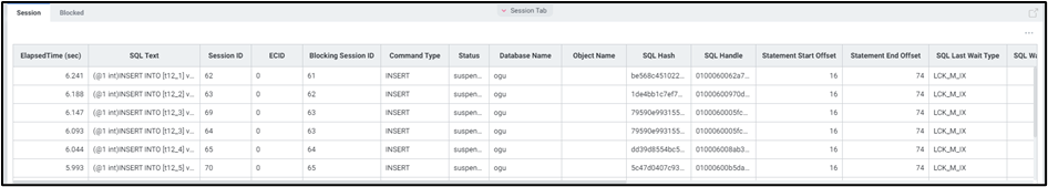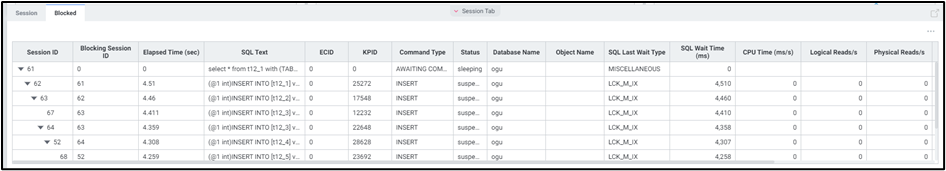 - 실시간 수행 중인 액티브 세션 및 락 트리 정보를 확인합니다.