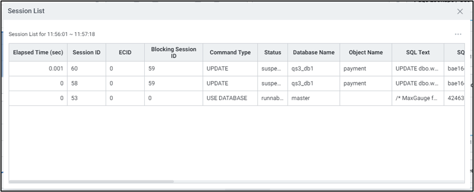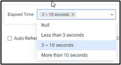 | 1 | Elapsed Time | 수행 시간 범위를 보여줍니다. 수행 시간을 다중 선택하여 해당 범위에 있는 세션을 조회할 수 있습니다. ![]() |