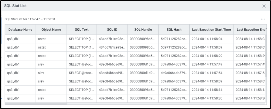 차트 드래그 시 드래그한 시간대에 수행된 SQL을 확인할 수 있습니다.