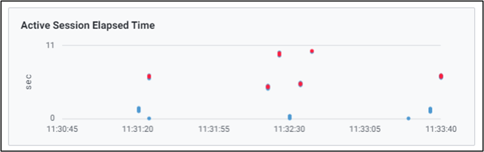 4-3) Active Session Elapsed Time 세션 수행 시간을 Scatter 차트로 확인할 수 있습니다.