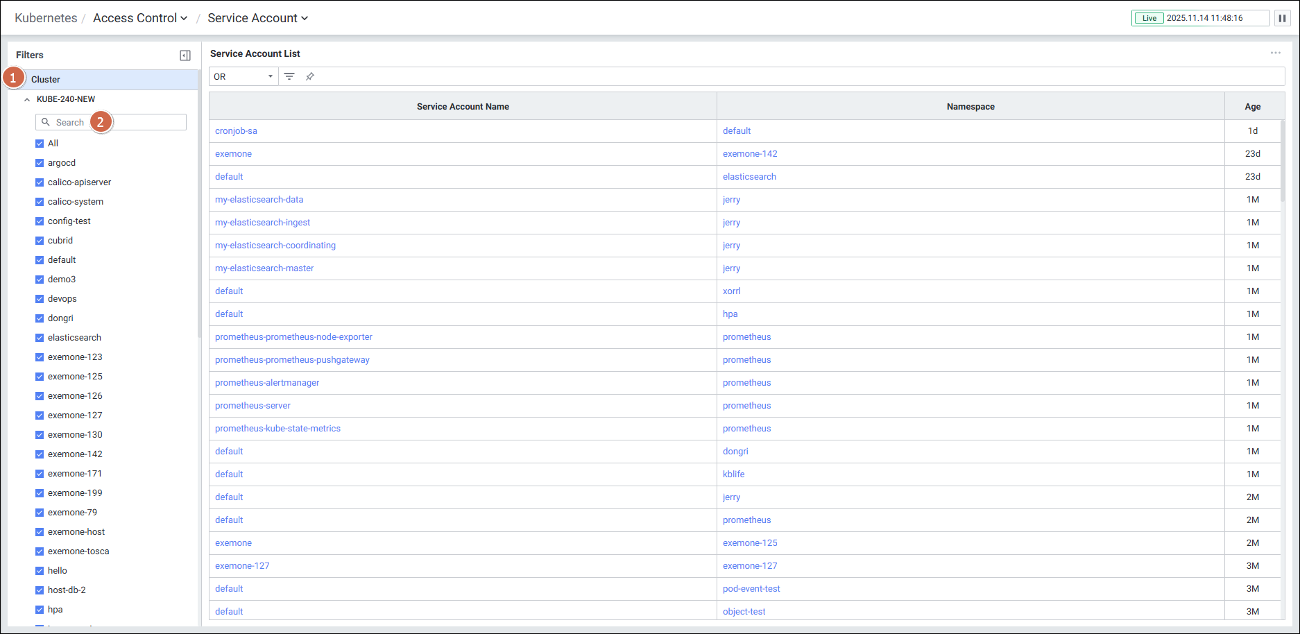 | 1 | Cluster | 클러스터 하위의 필터 항목을 보여줍니다. |