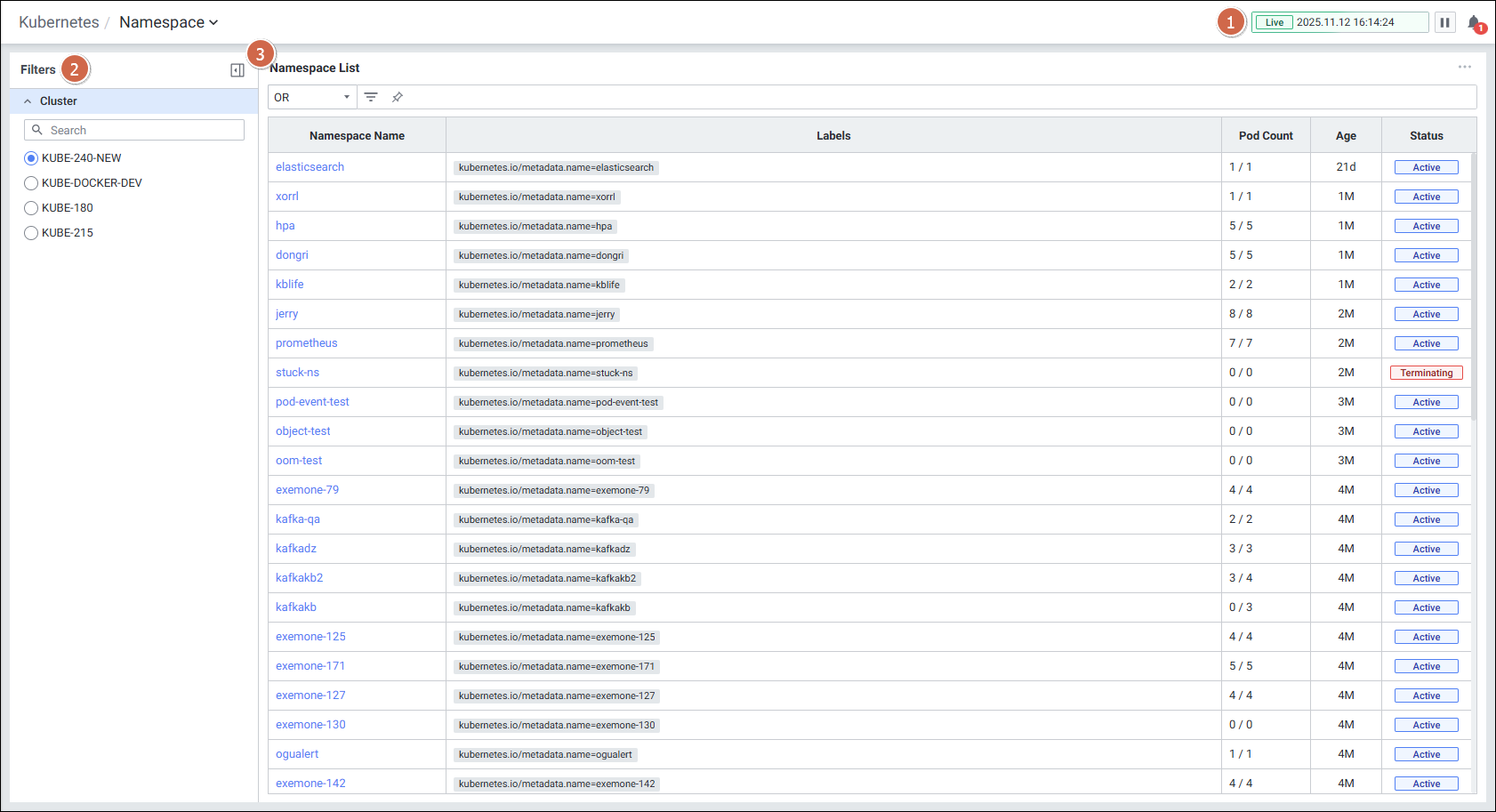 | 3 | Namespace List | 네임스페이스 목록을 보여줍니다. |
