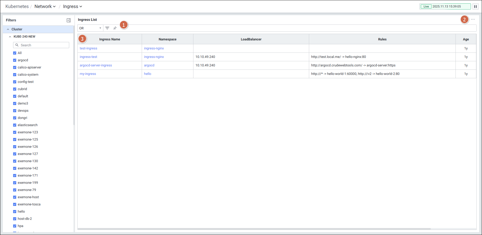 | 3 | Ingress List | Ingress 목록을 Grid 형태로 보여줍니다. |