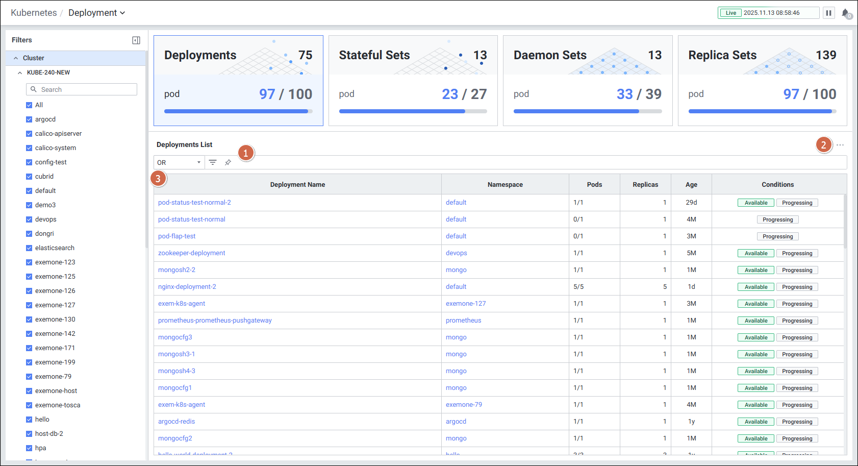 | 3 | Deployment List | Deployment 목록을 Grid 형태로 보여줍니다. |