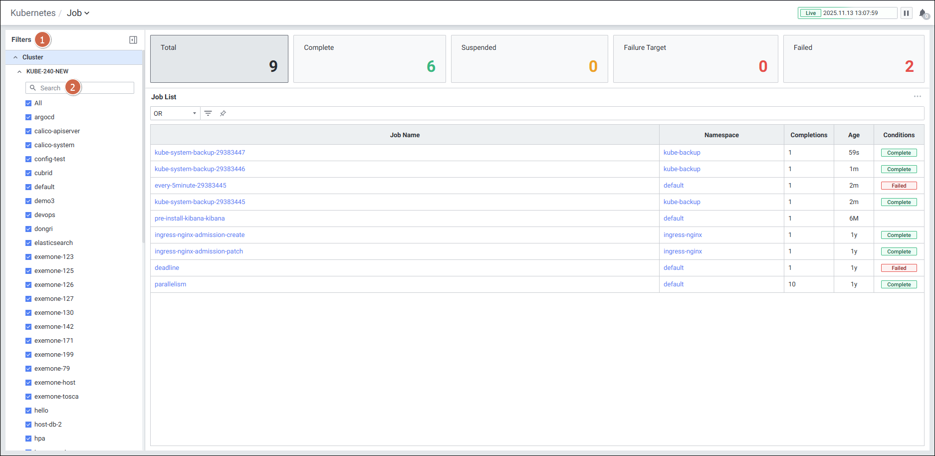 | 1 | Cluster | 클러스터 하위의 필터 항목을 보여줍니다. |