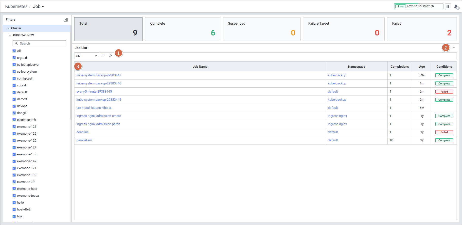 | 1 | Job Name | Job의 이름 (클릭 시 4.4.5.4. Job 디테일 슬라이드 오픈) |
