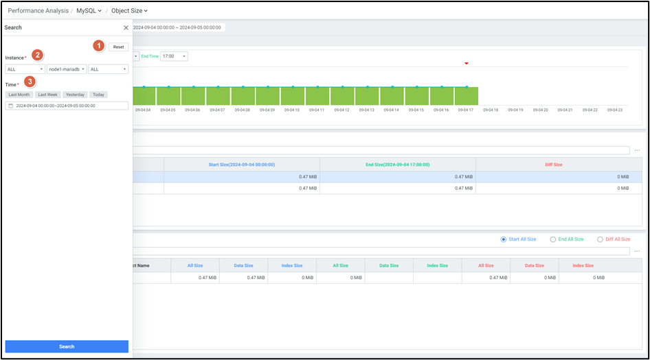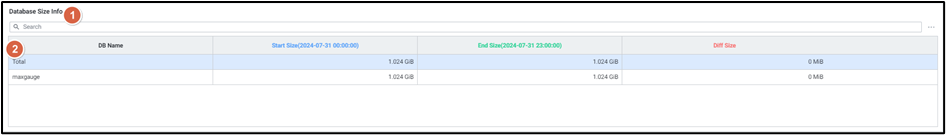 | 2 | Start Time Size | 검색 패널에서 선택한 조회 기간 중, 처음 일자의 Database Size |
