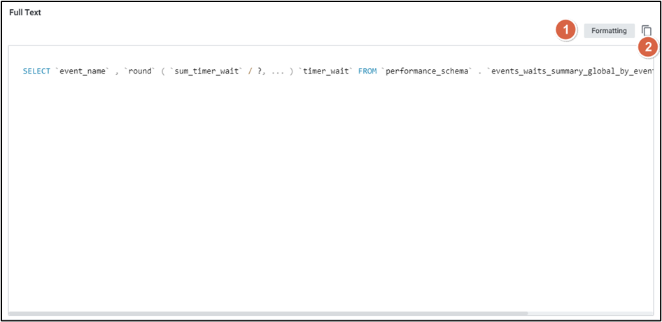 | 4 | Filters | 검색 조건을 입력합니다. Digest : 대소문자는 구분하지 않으며 전체 일치만 검색이 가능합니다. SQL Text : 대소문자는 구분하지 않으며 일부 일치 검색이 가능합니다. |