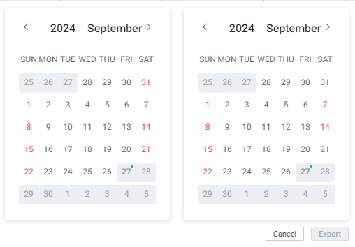 | 4 | Export | 지정된 대시보드를 엑셀로 추출합니다.![]() from-to로 우측 선택에 따른 30일 전까지 선택할 수 있습니다. |