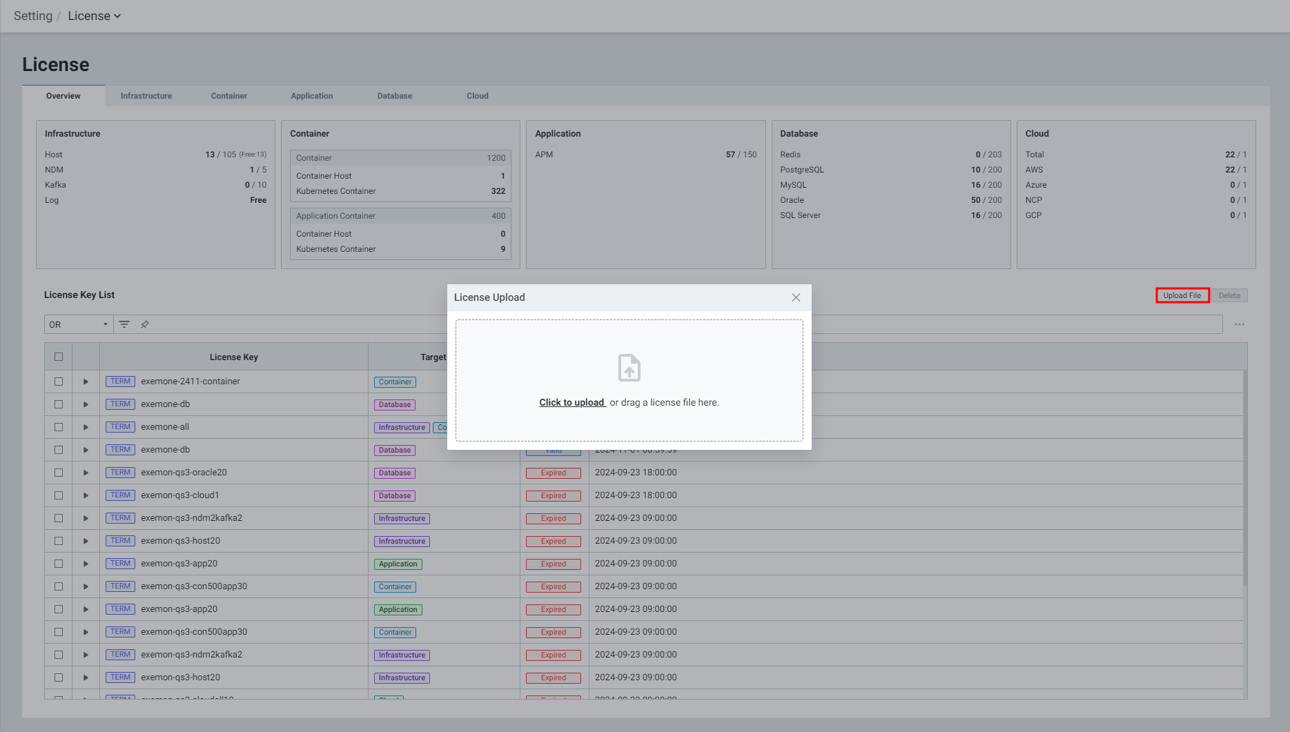 [Upload File] 버튼을 클릭하여 License 파일을 등록 합니다.
